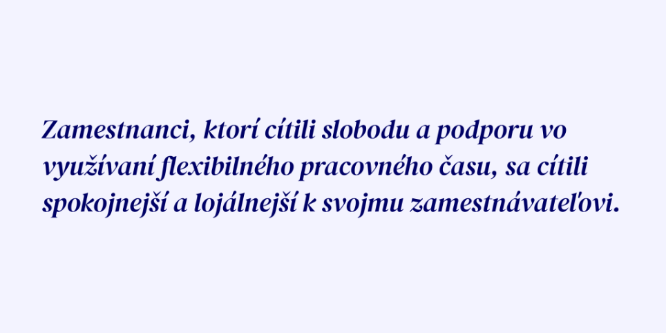 Mnohým slovenským rodičom táto situácia pomohla vybrať si v náročnom období zavretých škôl a škôlok medzi prácou a starostlivosťou o deti. Aj vďaka tejto skúsenosti môžu zamestnávatelia zmierniť obavu z flexibility ako prípadnej zníženej disciplíny zamestnancov. Veríme, že ju využijú vo svoj prospech aj do budúcnosti a otvoria tak túto možnosť svojim zamestnancom, čím im uľahčia ich každodenný time manažment.